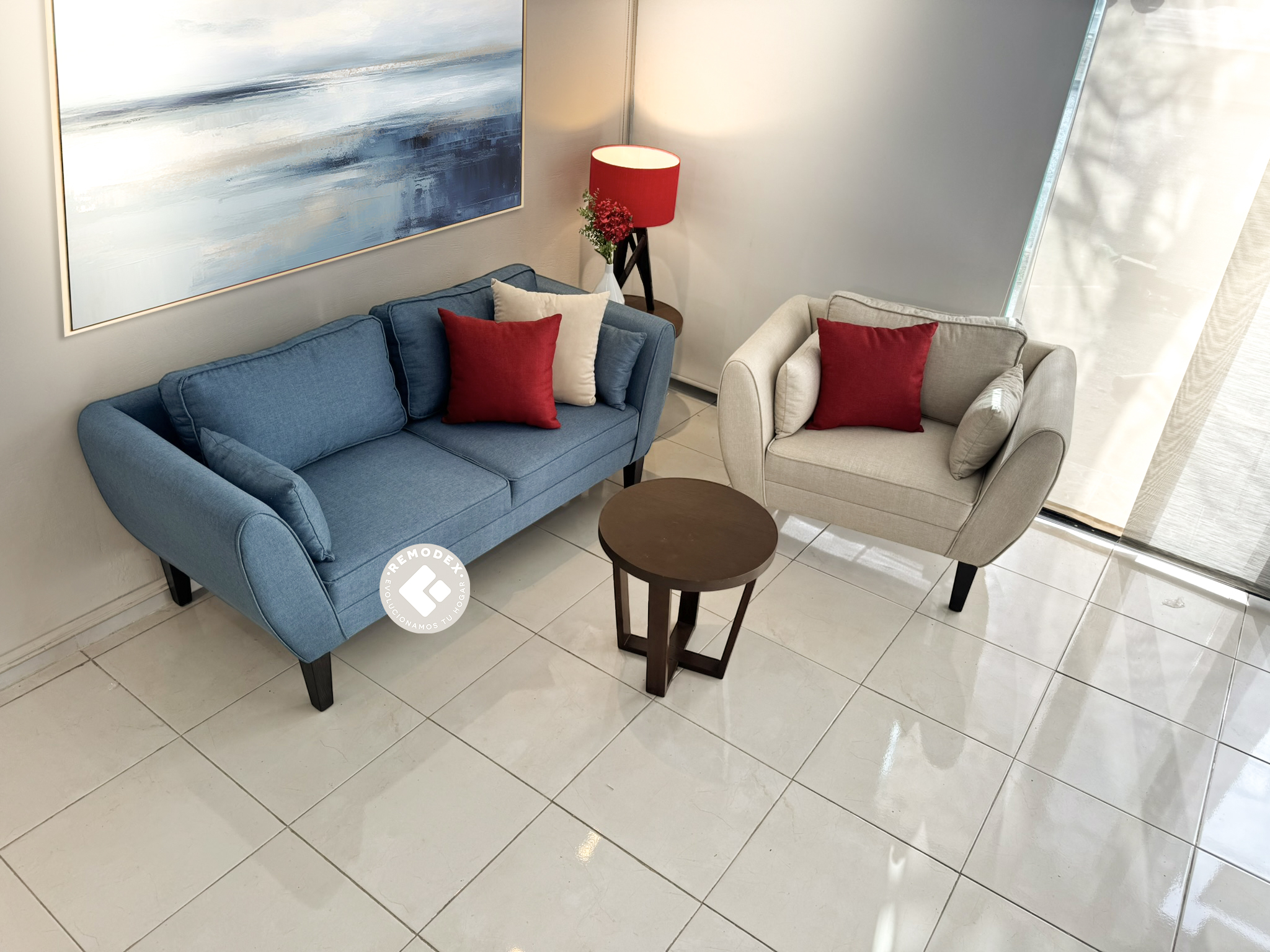 Estructura solida de pino y tapizado en tela de lino, acabado final poliuretano