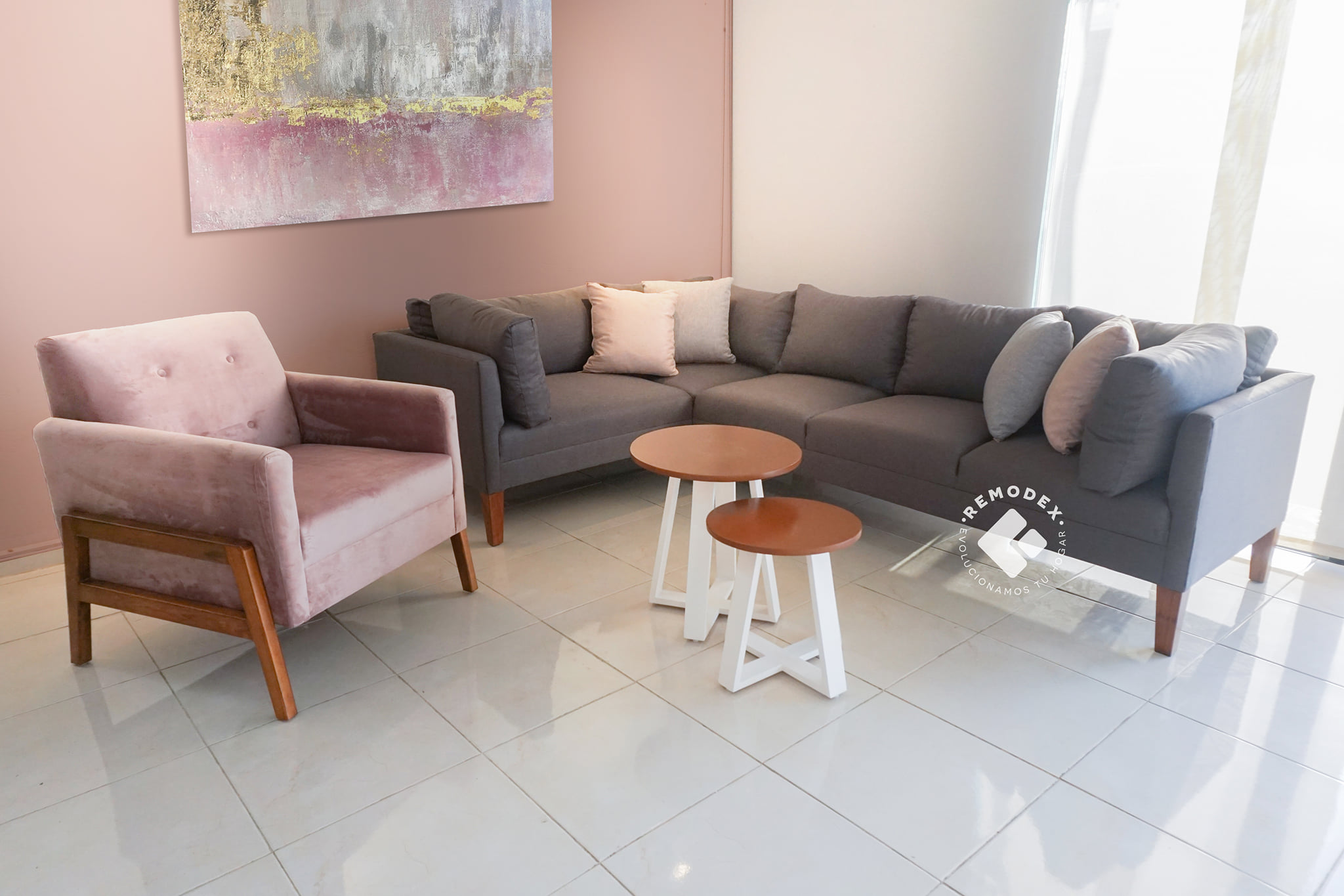 Estructura solida de pino y tapizado en tela de lino, acabado final poliuretano