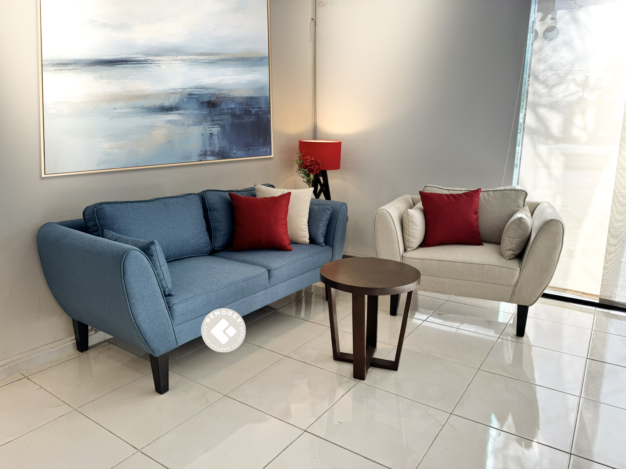 Estructura solida de pino y tapizado en tela de lino, acabado final poliuretano