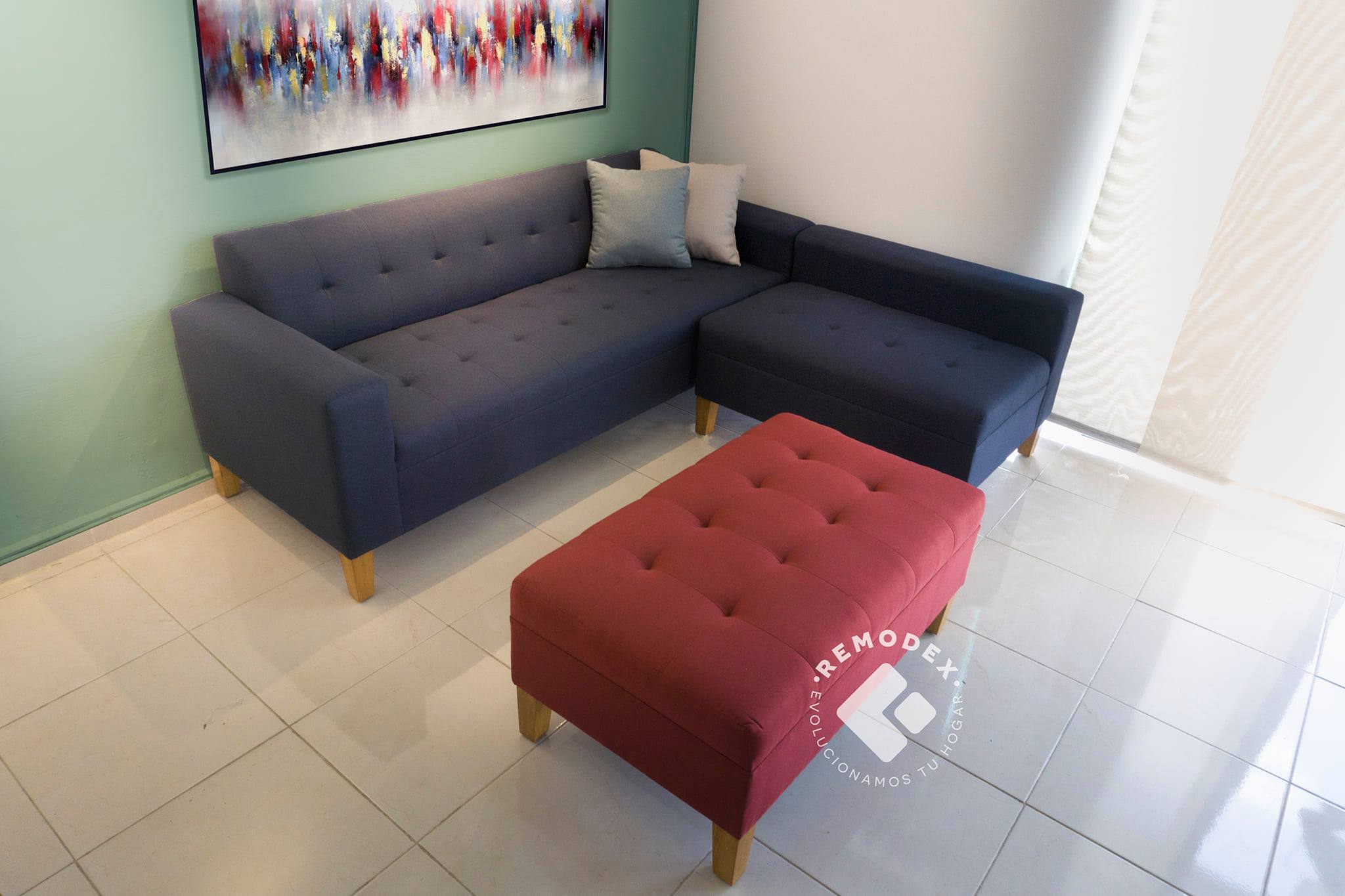 Estructura solida de pino y tapizado en tela de lino, acabado final poliuretano