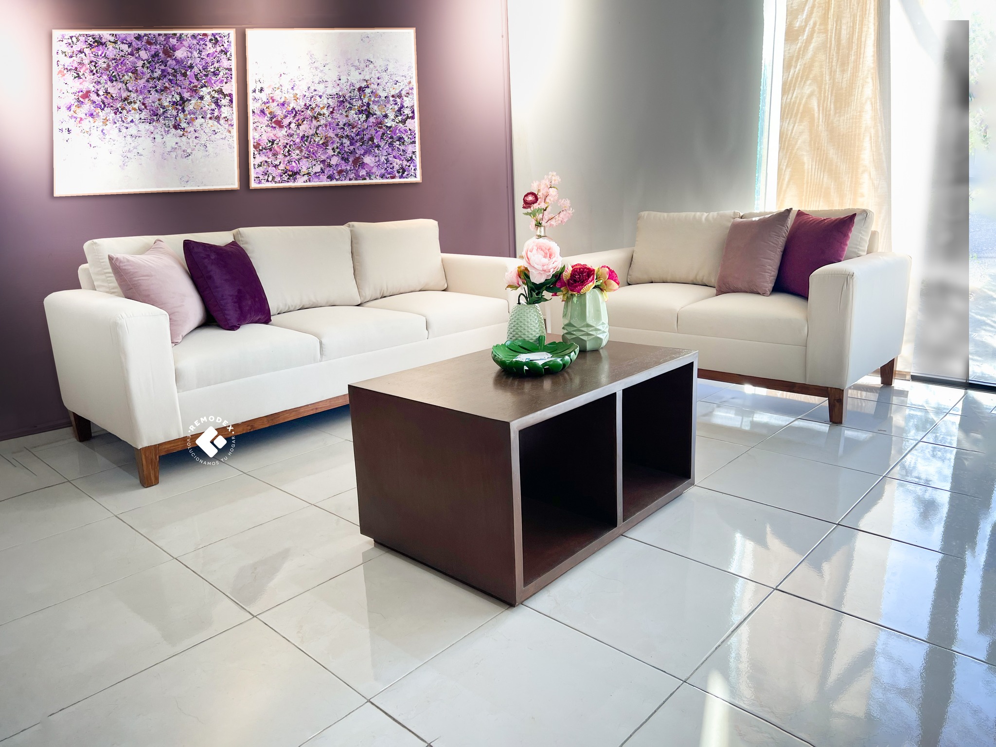 Estructura solida de pino y tapizado en tela de lino, acabado final poliuretano