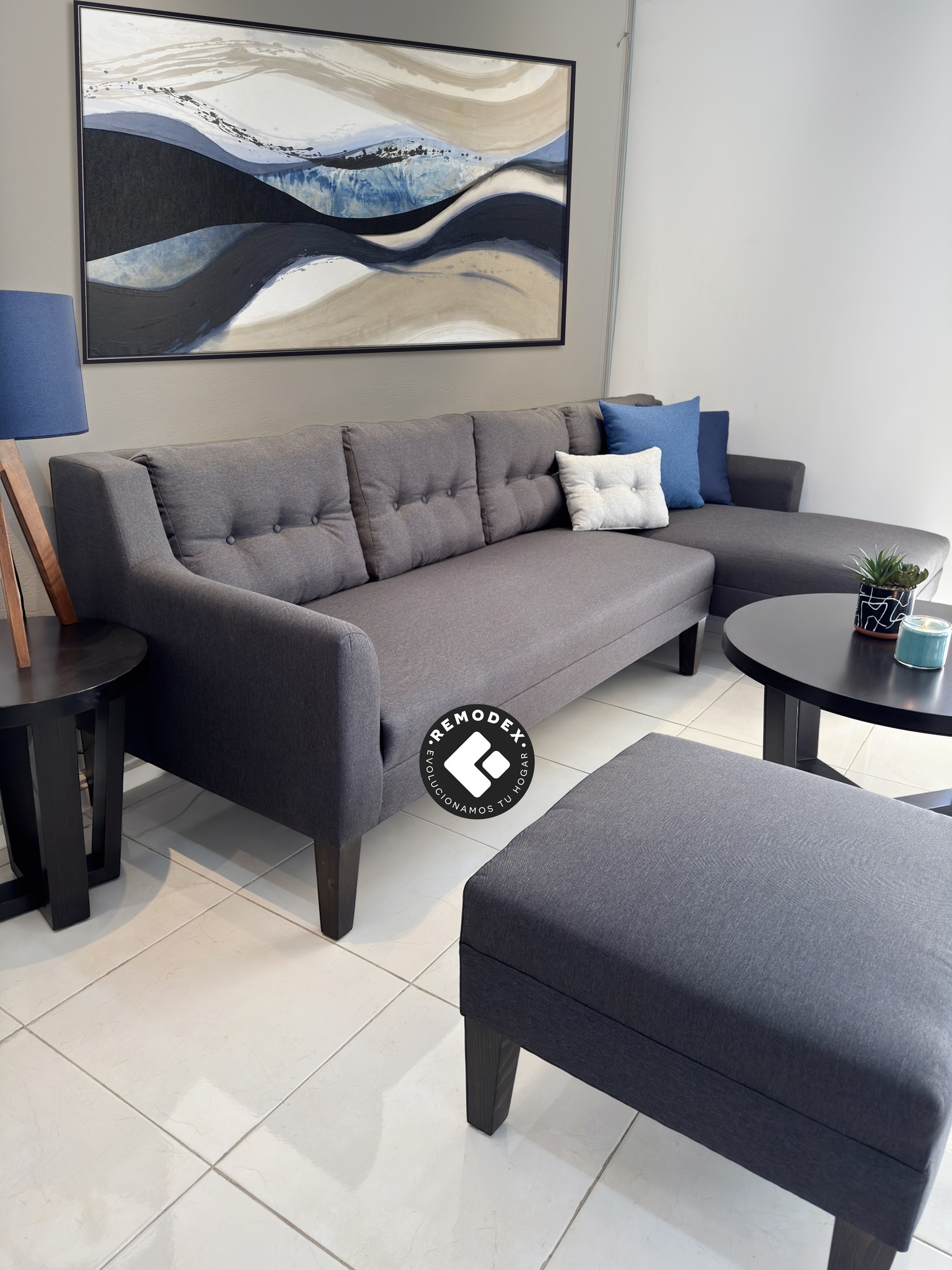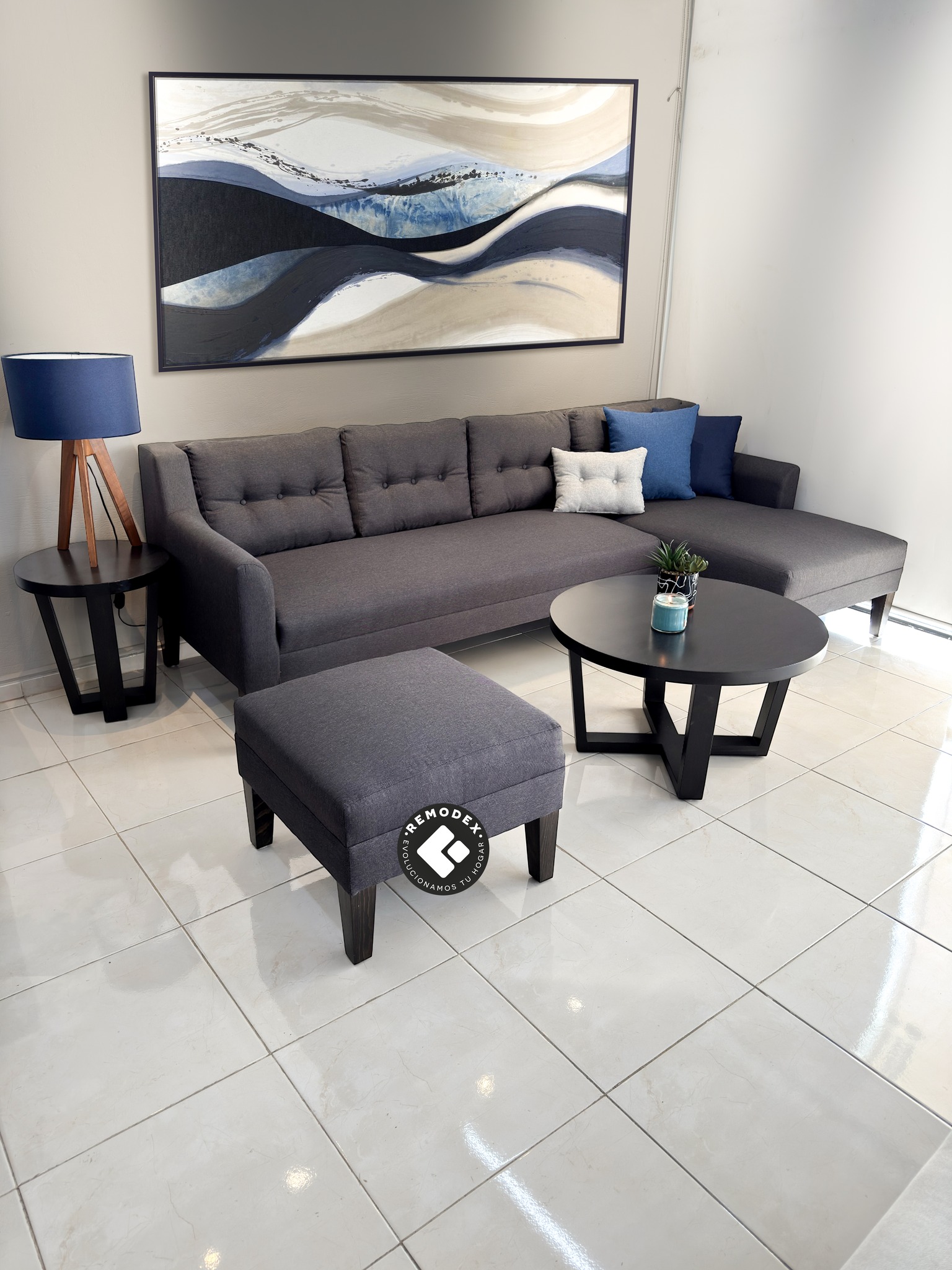 PAQUETE SOFÁ L R4/TABURETE/MESA DE CENTRO GENOVA